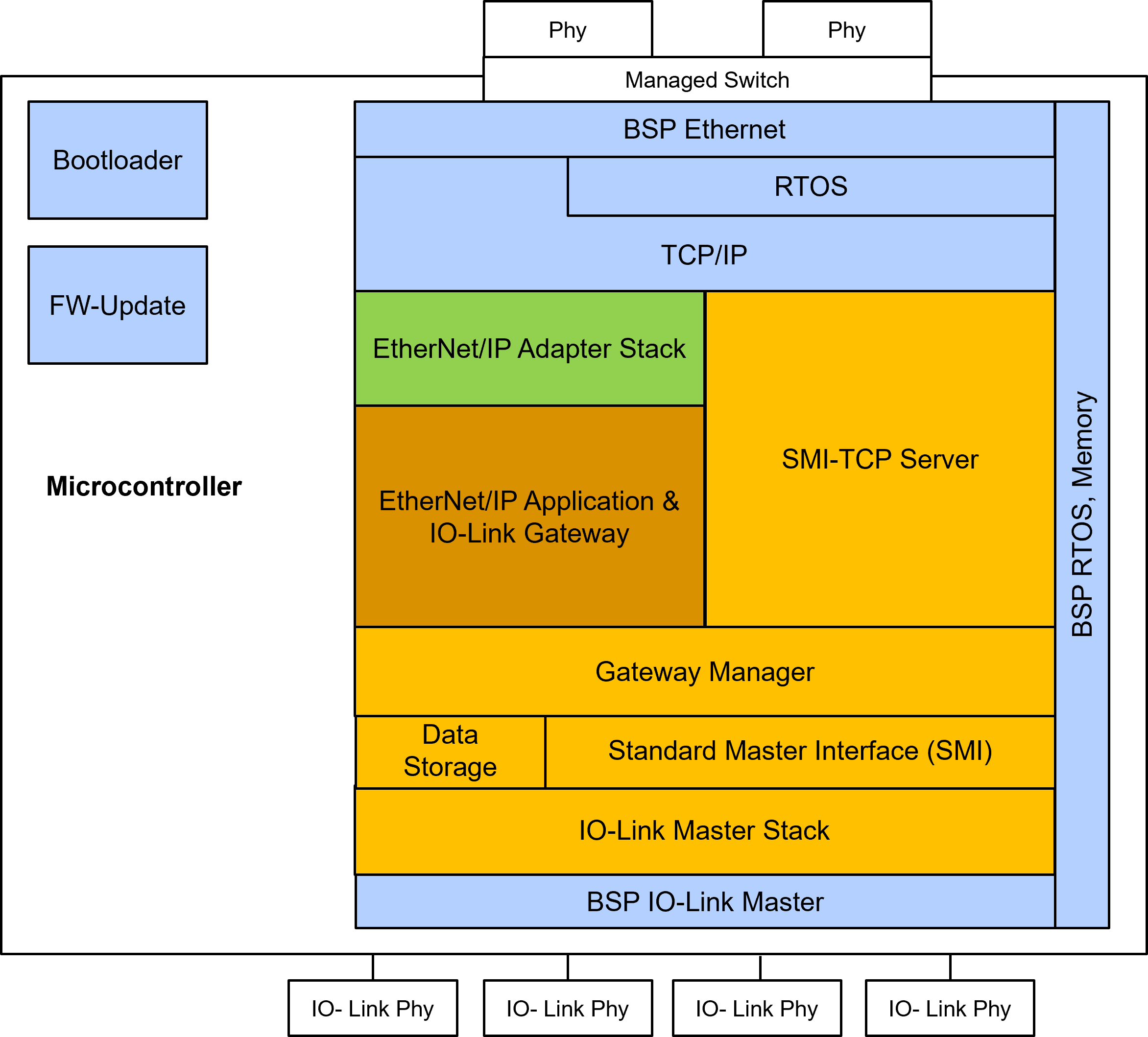 Auf der Grundlage unser Basis-Technologie wie dem Master Stack oder auch dem PROFINET IO Device Stack sowie EtherNet/IP Adapter Stack können wir Ihnen entsprechende IO-Link Gateway Applications als Optionspaket anbieten.