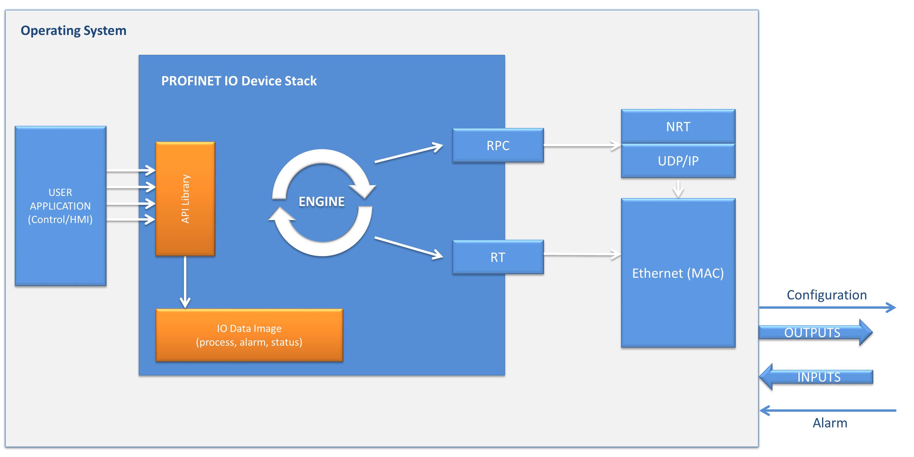Der Kern des PROFINET IO Device Stack ist vollständig hardwareunabhängig und unterstützt 32-Bit-Mikroprozessoren (ARM, Intel, PowerPC, Rx, STM32 oder andere). Zur Ausführung wird ein Echtzeitbetriebssystem sowie TCP/IP- und SNMP-Stack benötigt. Dabei haben sich Microkernel-RTOS wie FreeRTOS, emBos, TI-RTOS bestens bewährt.